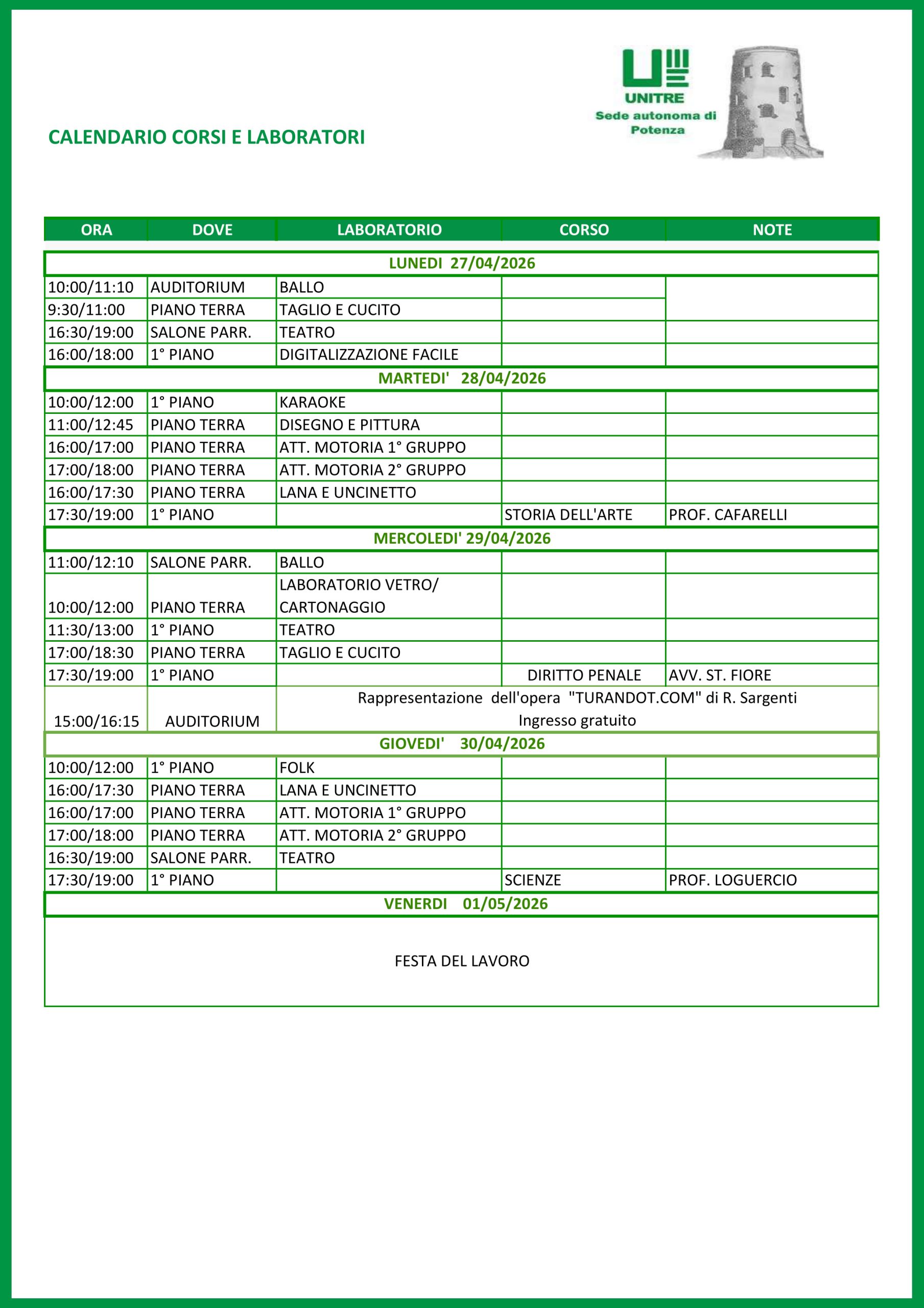 puntualissima organizzazione; ringrazio gli intervenuti; l’Unitre è un’isola felice, non è un club di alta società, ma è un centro di servizi culturali e sociali aperto a tutti, che ha come finalità un arricchimento