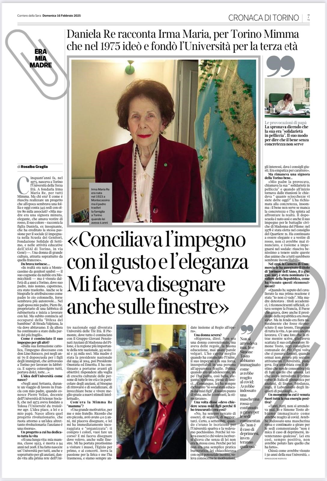 E’ con enorme piacere che riportiamo la pagina con la quale che lo scorso 16 febbraio 2025, Il Corriere della Sera ha voluto onorare la sua figura.